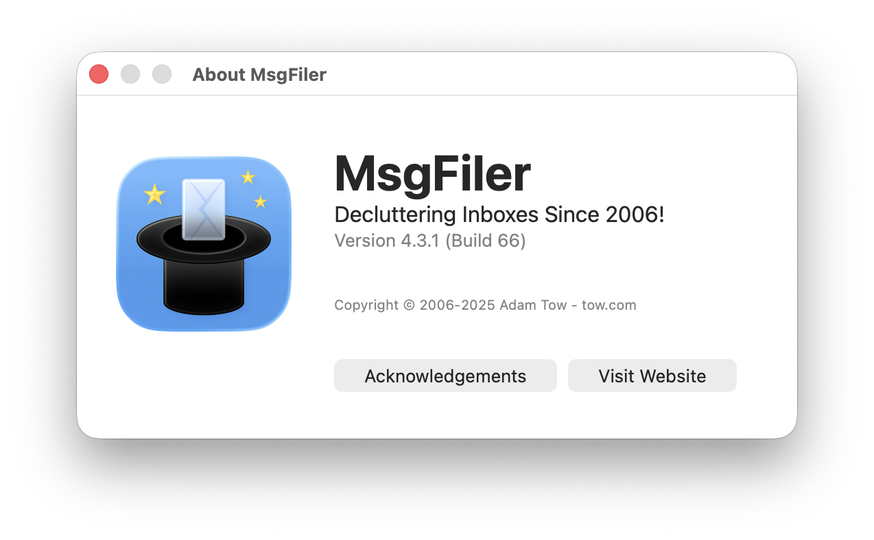 * Prevented macOS from quitting MsgFiler when it’s running in the background.